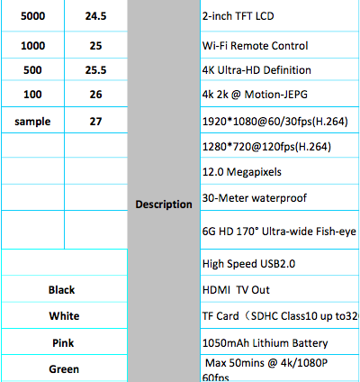 Cámara deportiva BHSP-H9 wifi, 4k